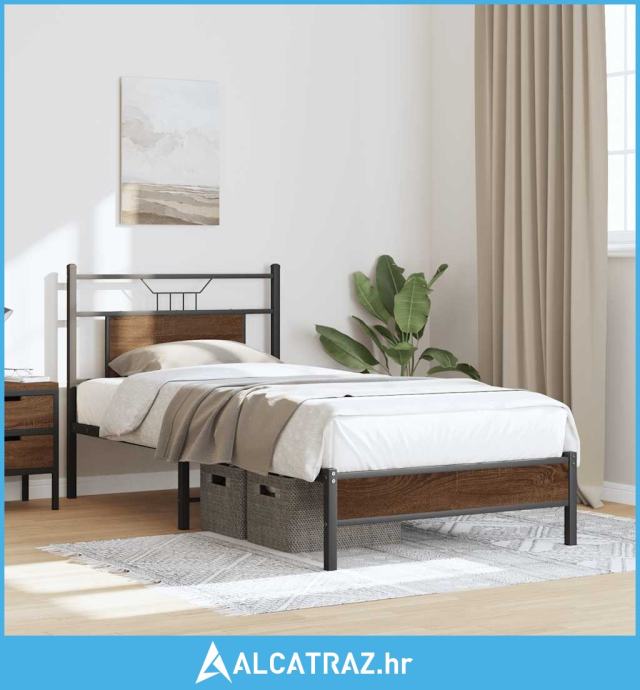 Okvir kreveta bez madraca smeđa boja hrasta 75x190 cm drveni - NOVO