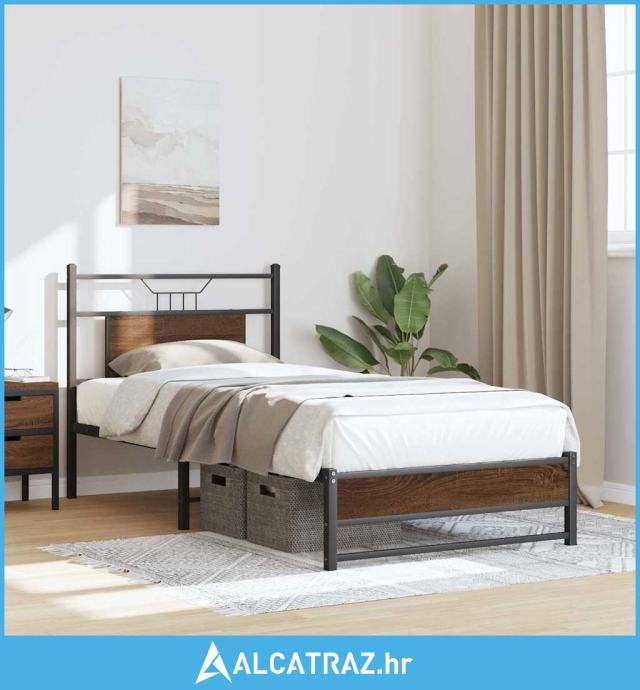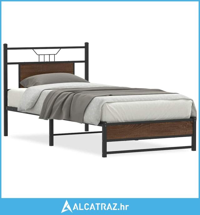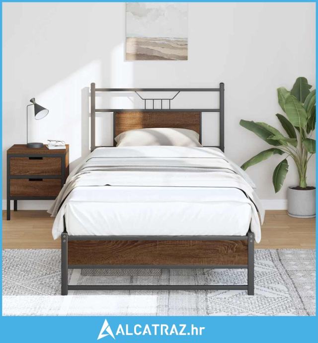 Okvir kreveta bez madraca smeđa boja hrasta 75x190 cm drveni - NOVO