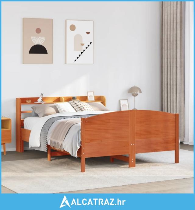 Okvir kreveta bez madraca voštano smeđi 135x190 cm od borovine - NOVO