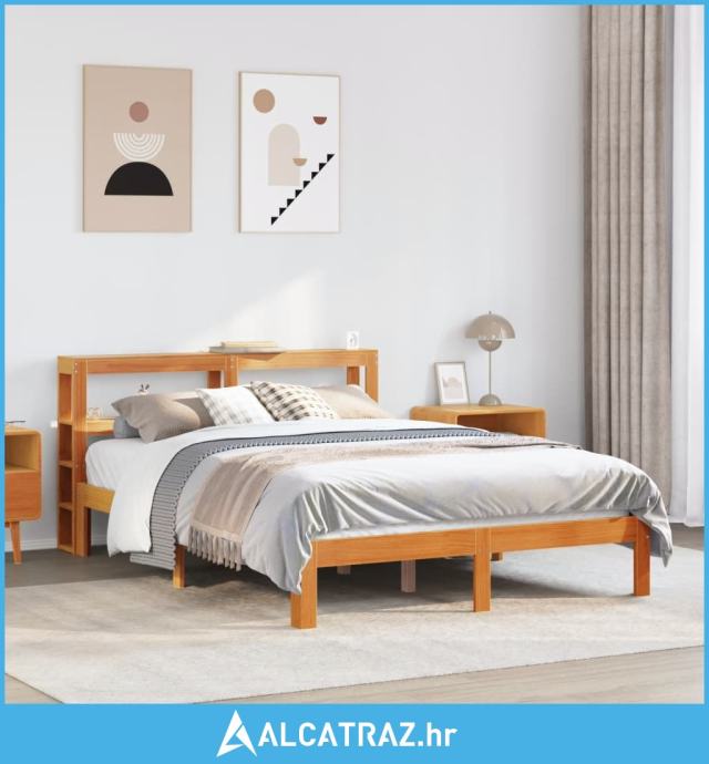 Okvir kreveta bez madraca voštano smeđi 135x190 cm od borovine - NOVO