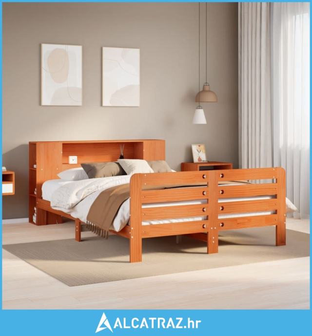 Okvir kreveta bez madraca voštano smeđi 135x190 cm od borovine - NOVO