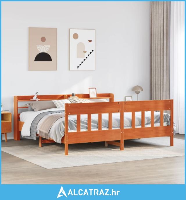 Okvir kreveta bez madraca voštano smeđi 200x200 cm od borovine - NOVO