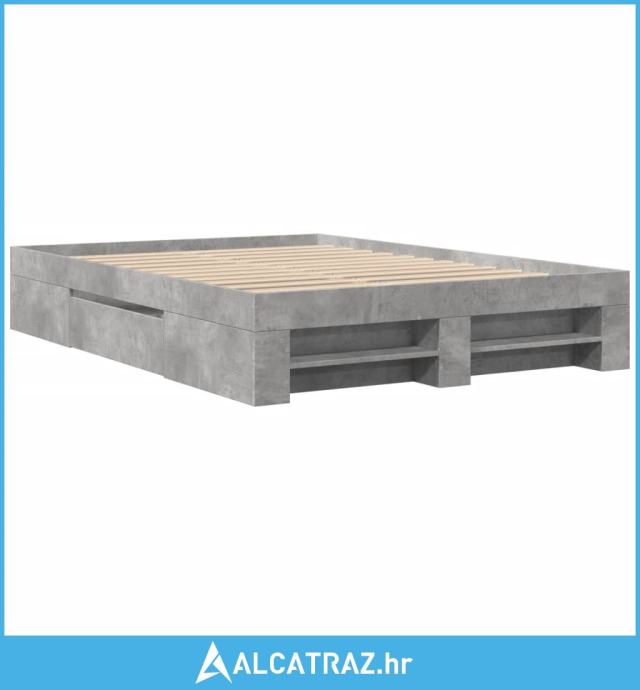 Okvir kreveta boja betona 135 x 190 cm od konstruiranog drva - NOVO