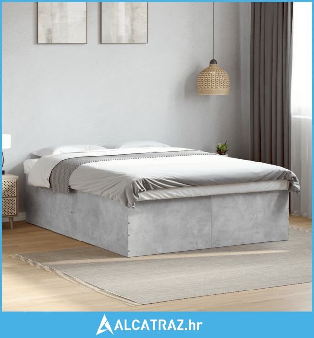 Okvir kreveta boja betona 150x200 cm od konstruiranog drva - NOVO