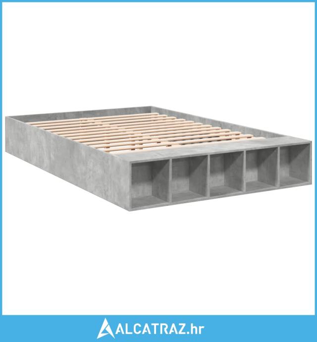 Okvir kreveta boja betona 150x200 cm od konstruiranog drva - NOVO