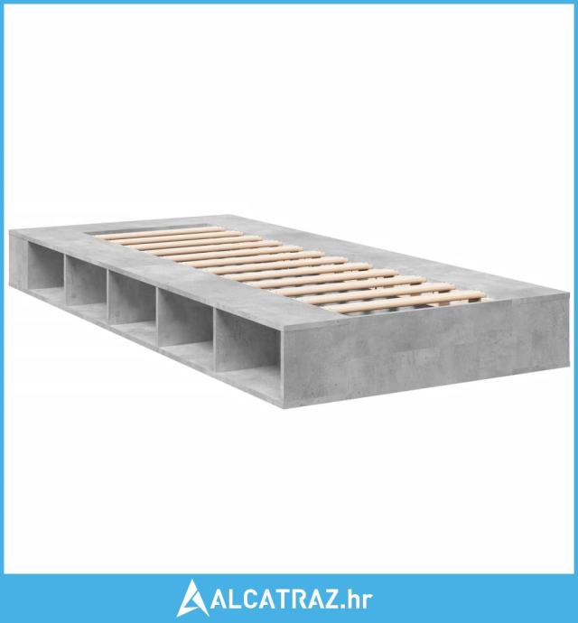 Okvir kreveta boja betona 75x190 cm od konstruiranog drva - NOVO