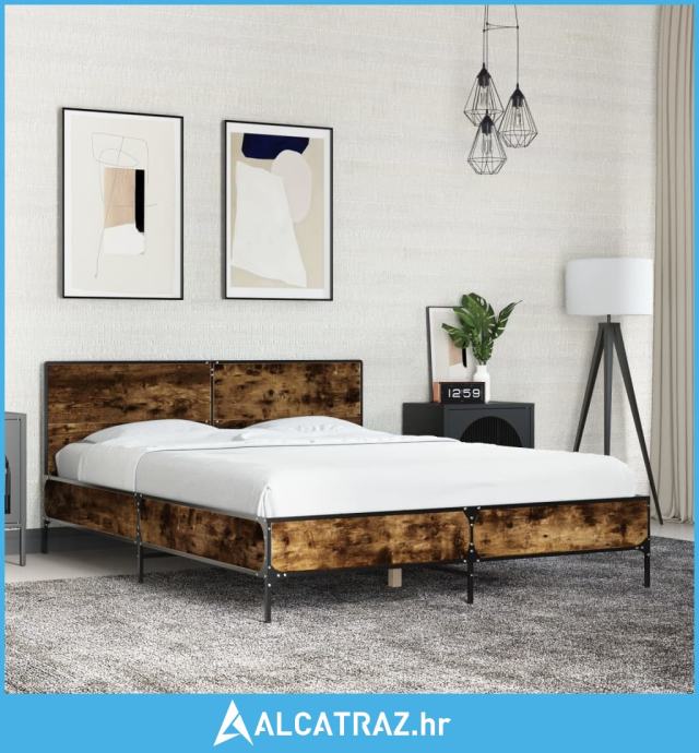 Okvir kreveta boja hrasta 140x190 cm konstruirano drvo i metal - NOVO