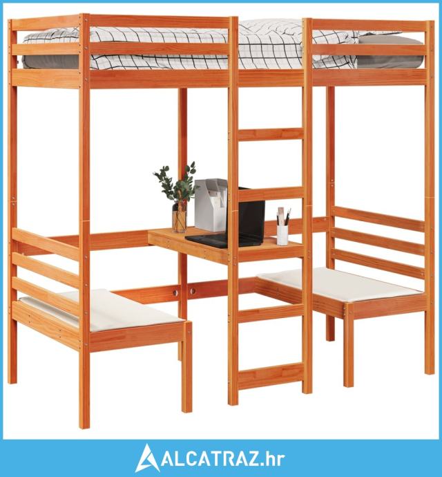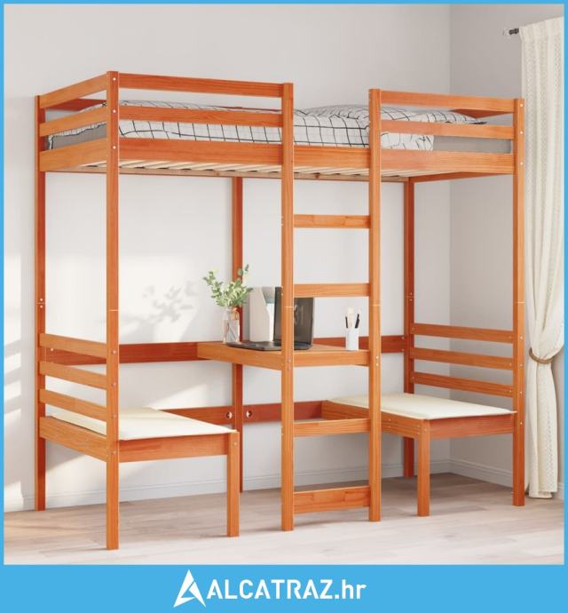 Okvir kreveta na kat sa stolom i stolicama 90x190 cm borovina - NOVO