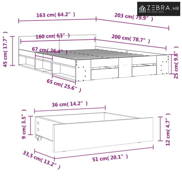 Dimenzije ladice kreveta (svake): 51 x 33,5 x 12 cm (D x Š x V)