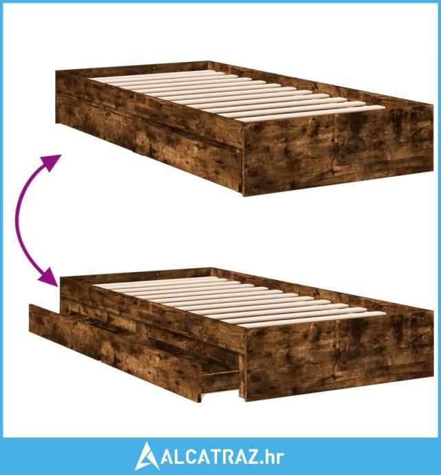 Okvir kreveta s ladicama boja dimljenog hrasta 90x190 cm drveni - NOVO