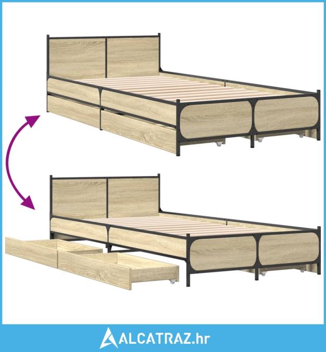 Okvir kreveta s ladicama boja hrasta sonome 75x190 cm drveni - NOVO