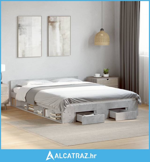 Okvir kreveta s ladicama siva boja betona 120x190 cm drveni - NOVO