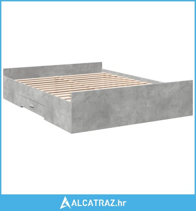 Okvir kreveta s ladicama siva boja betona 140 x 200 cm drveni - NOVO