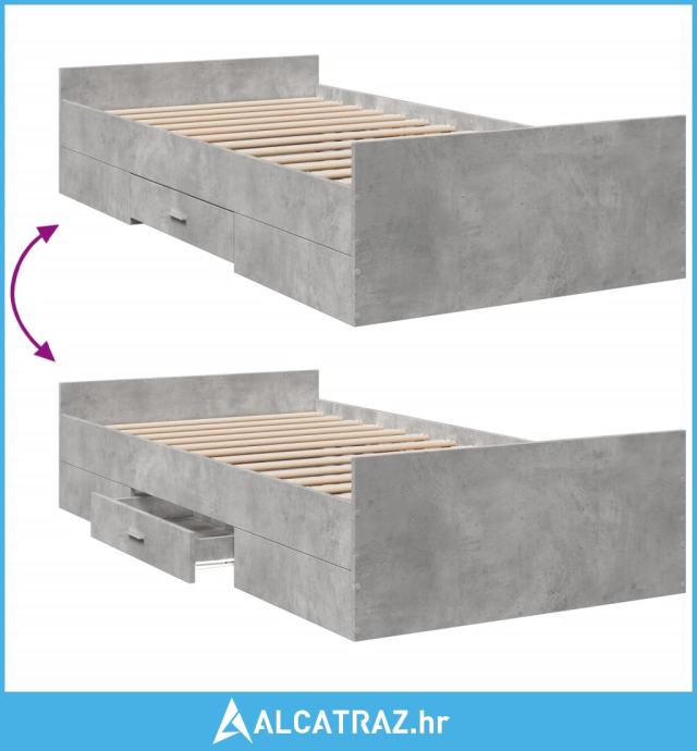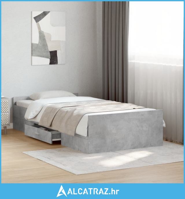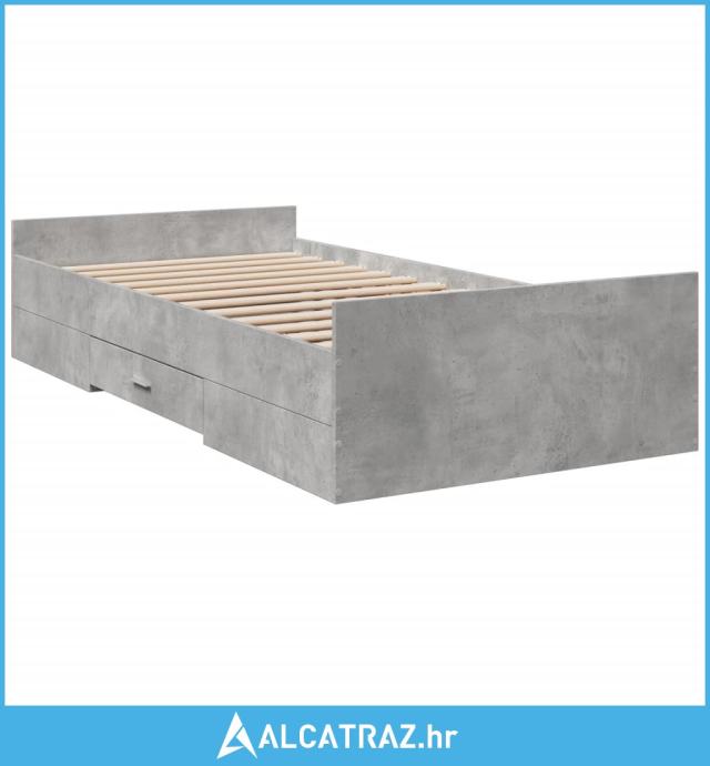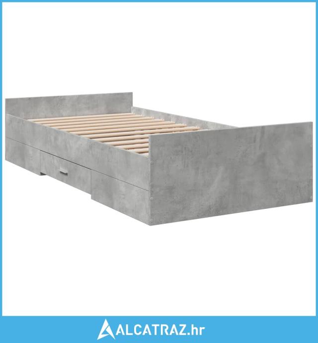 Okvir kreveta s ladicama siva boja betona 75x190 cm drveni - NOVO