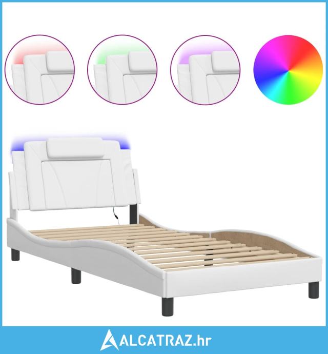 Okvir kreveta s LED svjetlima bijeli 100 x 200 cm umjetna koža - NOVO