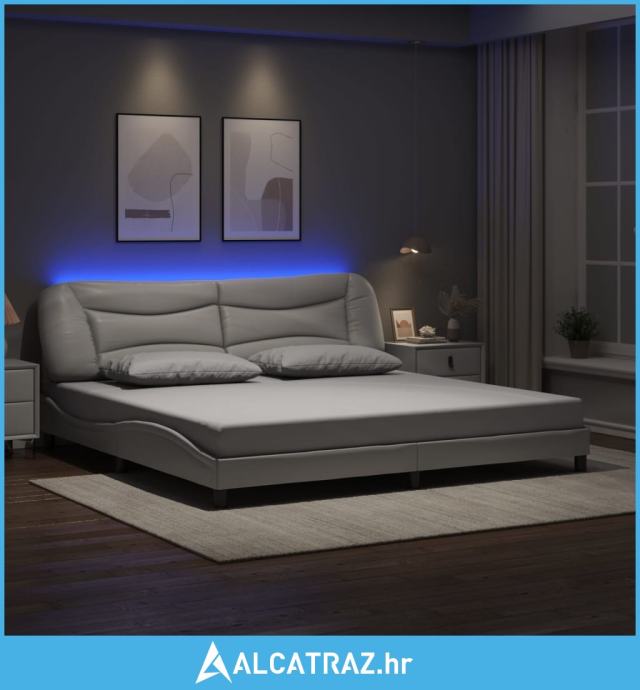Okvir kreveta s LED svjetlima bijeli 200 x 200 cm umjetna koža - NOVO
