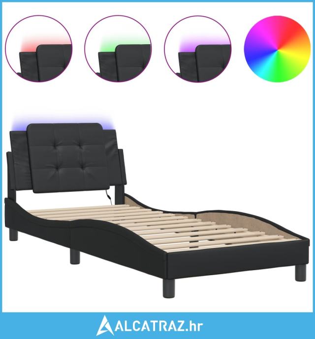 Okvir kreveta s LED svjetlima crni 100 x 200 cm od umjetne kože - NOVO