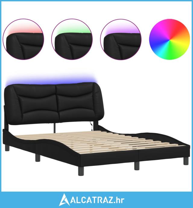 Okvir kreveta s LED svjetlima crni 140 x 200 cm od umjetne kože - NOVO