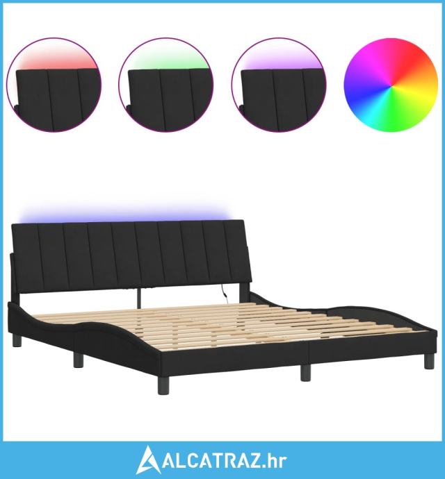 Okvir kreveta s LED svjetlima crni 180 x 200 cm baršunasti - NOVO