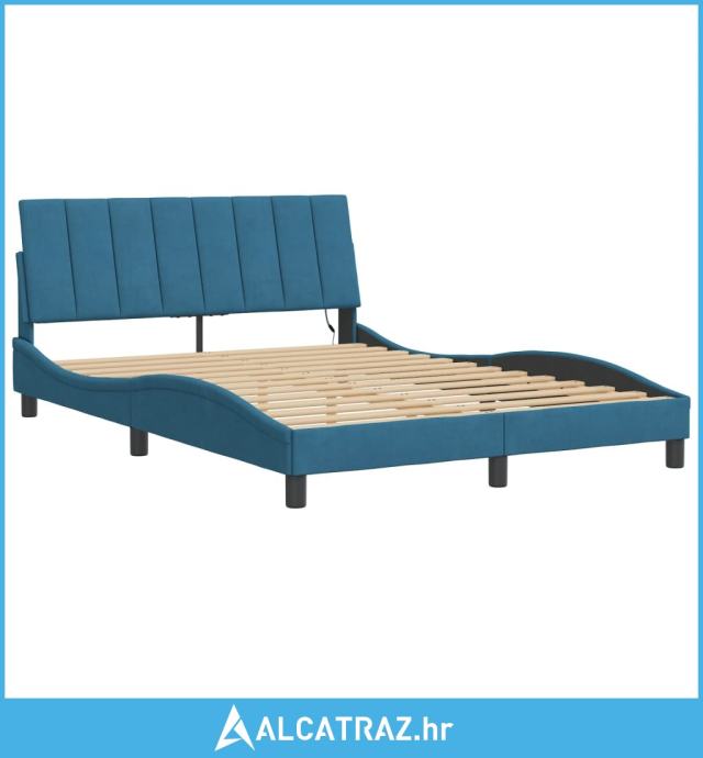Okvir kreveta s LED svjetlima plavi 140 x 190 cm baršunasti - NOVO