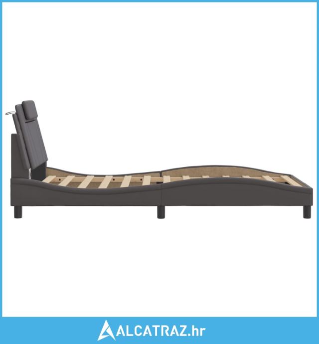 Okvir kreveta s LED svjetlima sivi 100 x 200 cm od umjetne kože - NOVO