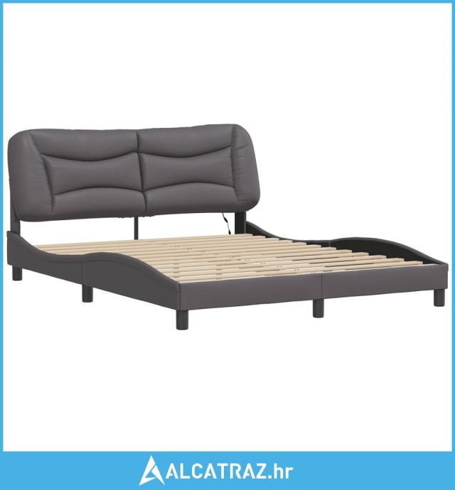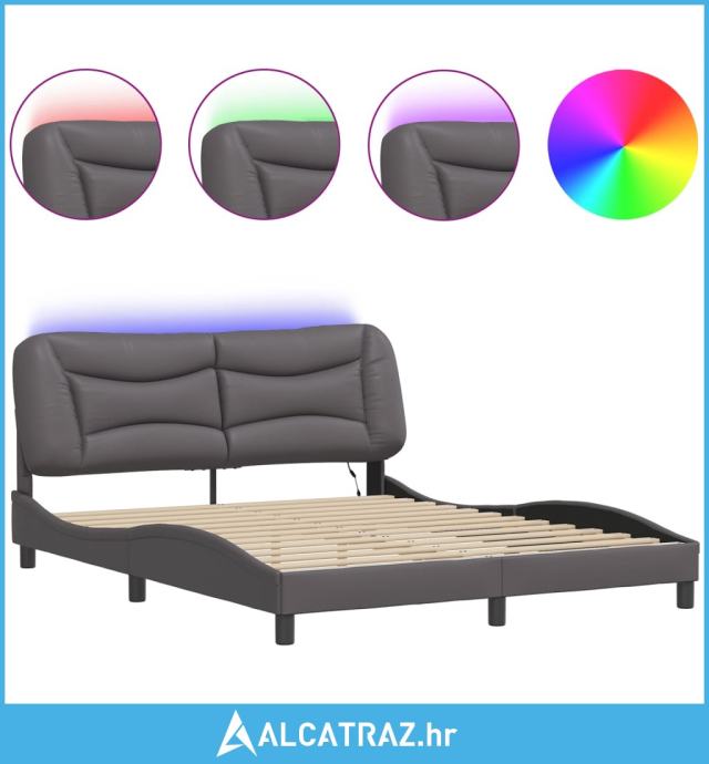 Okvir kreveta s LED svjetlima sivi 160 x 200 cm od umjetne kože - NOVO