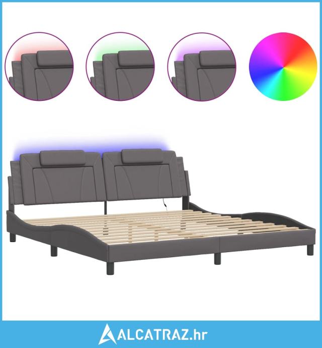 Okvir kreveta s LED svjetlima sivi 200 x 200 cm umjetna koža - NOVO