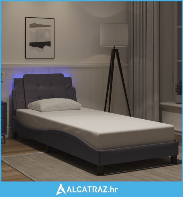 Okvir kreveta s LED svjetlima sivi 80 x 200 cm od umjetne kože - NOVO