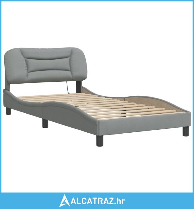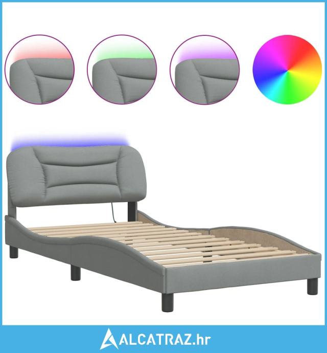 Okvir kreveta s LED svjetlima svjetlosivi 100x200 cm od tkanine - NOVO