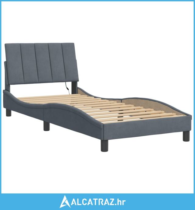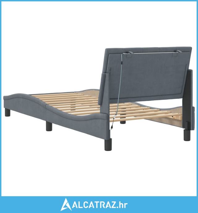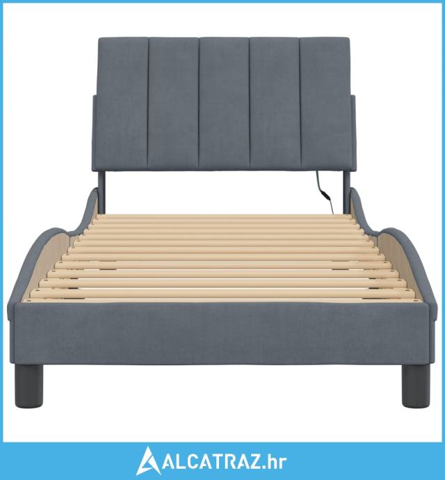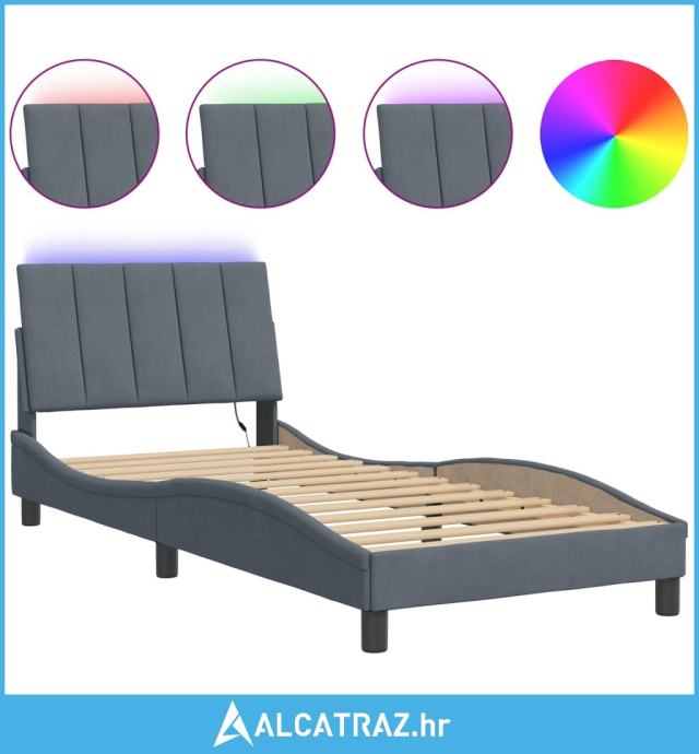 Okvir kreveta s LED svjetlima tamnosivi 90 x 200 cm baršunasti - NOVO