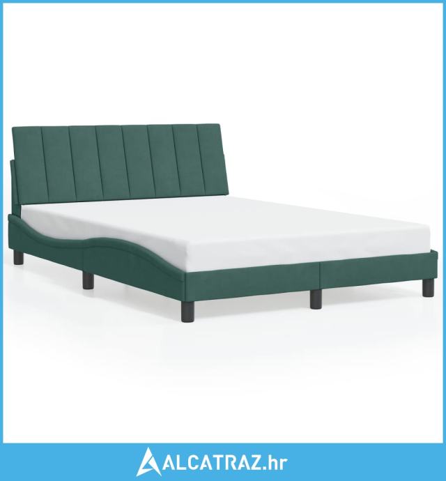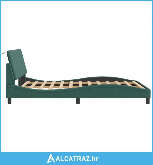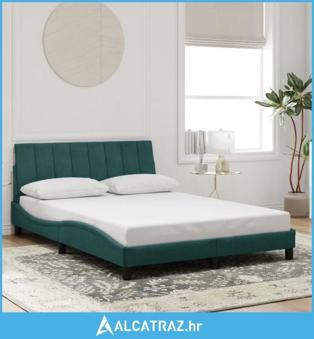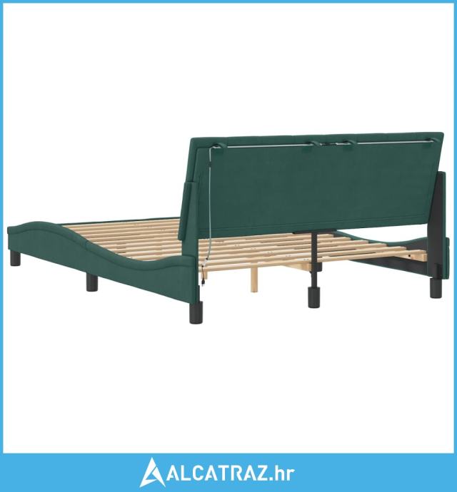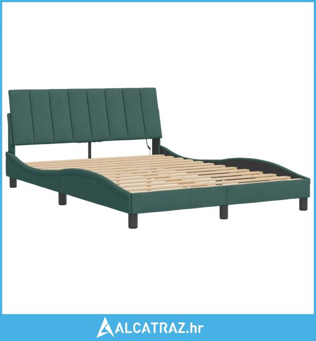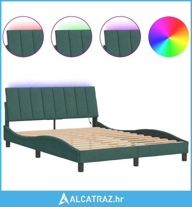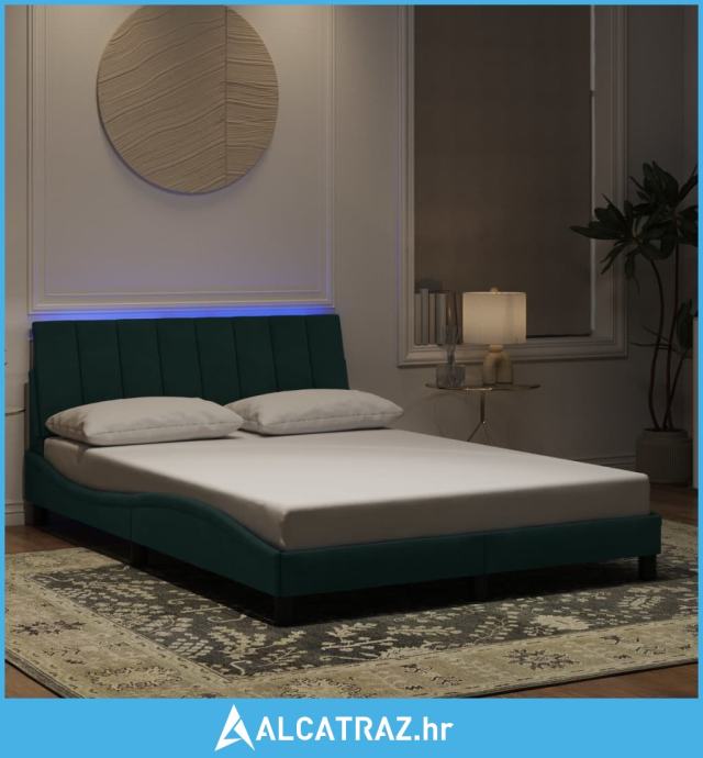 Okvir kreveta s LED svjetlima tamnozeleni 140x200 cm baršunasti - NOVO