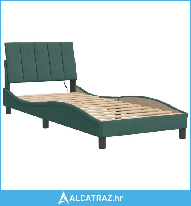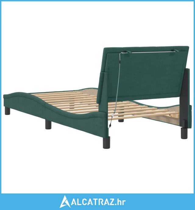 Okvir kreveta s LED svjetlima tamnozeleni 90x200 cm baršunasti - NOVO