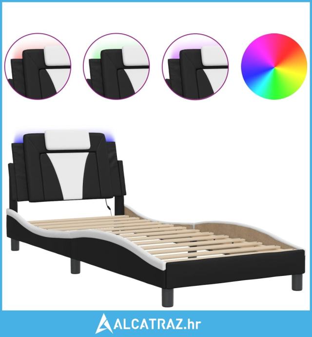 Okvir kreveta s LED svjetlom crno-bijeli 90x200 cm umjetna koža - NOVO
