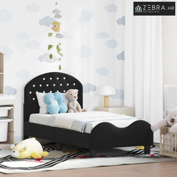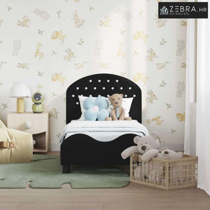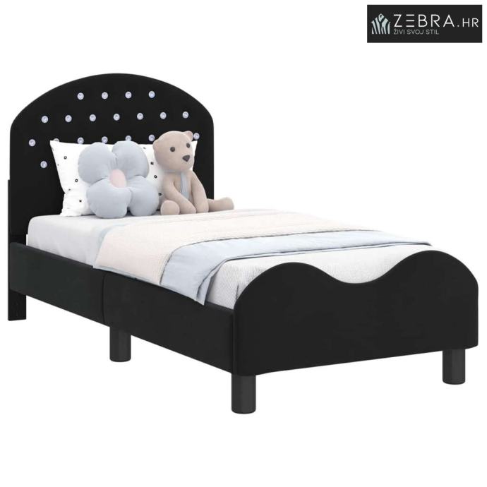 Okvir kreveta za malu djecu s naslonom Crna 70 x 140 cm Baršun