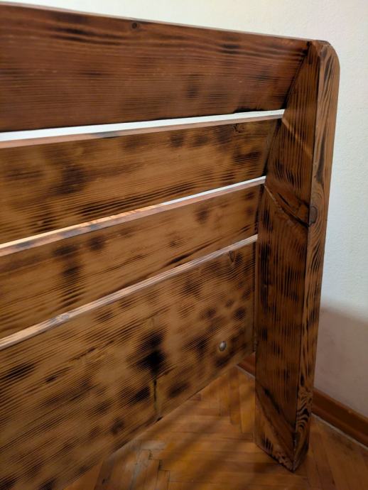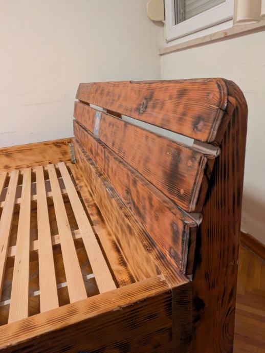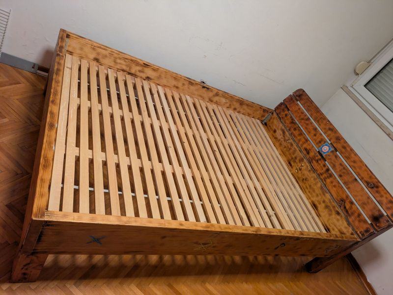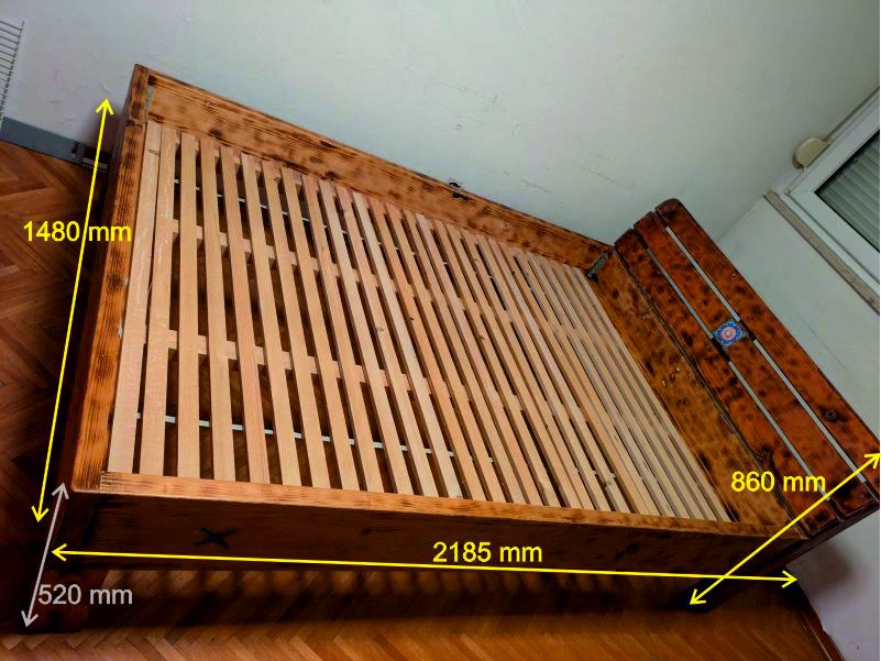 Krevet je čvrste konstrukcije i rađen po naruđbi od masivnog drva.