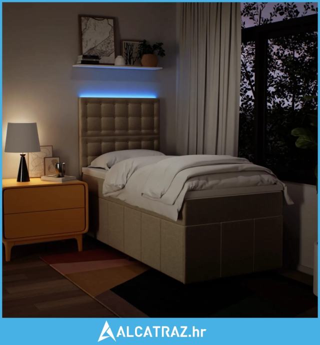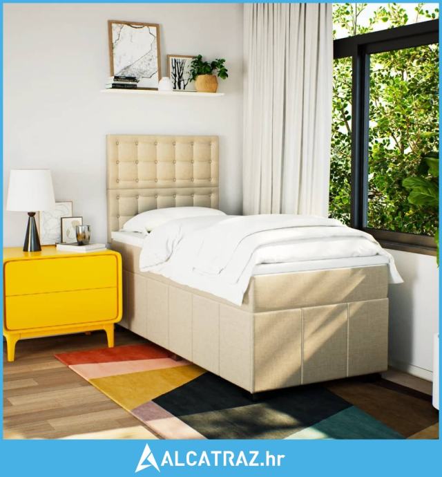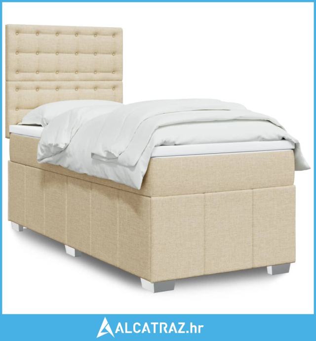 Okvir kreveta s oprugama i madrac krem 80x200 cm od tkanine - NOVO