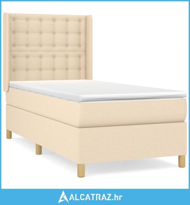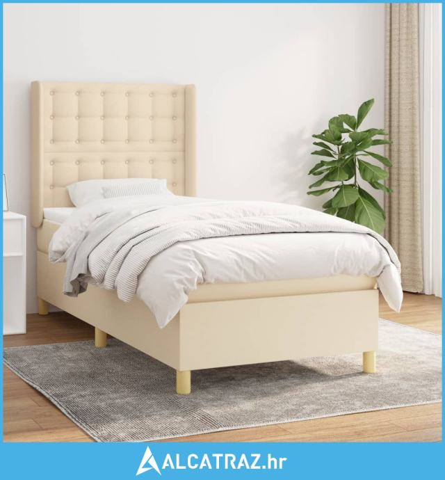 Okvir kreveta s oprugama i madrac krem 80x200 cm od tkanine - NOVO