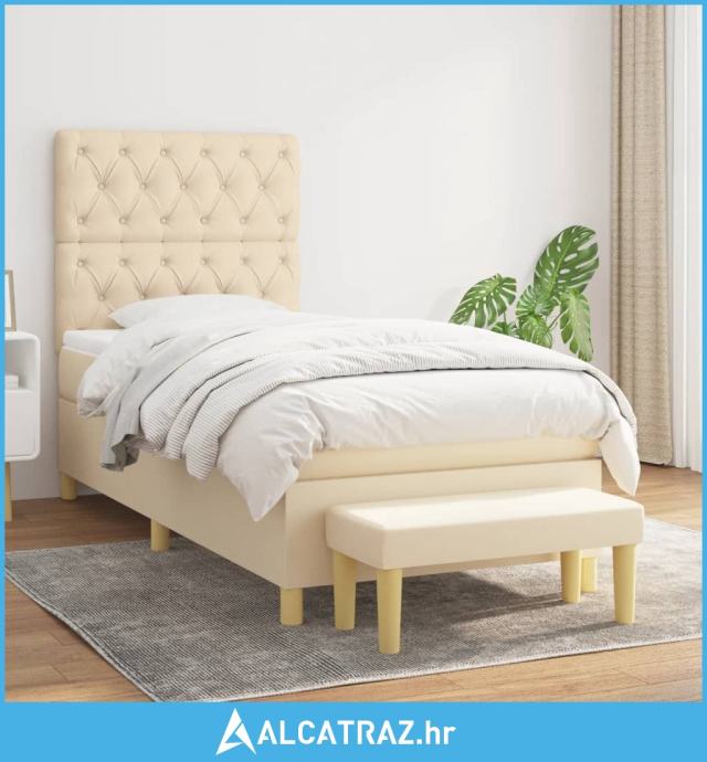 Okvir kreveta s oprugama i madrac krem 80x200 cm od tkanine - NOVO