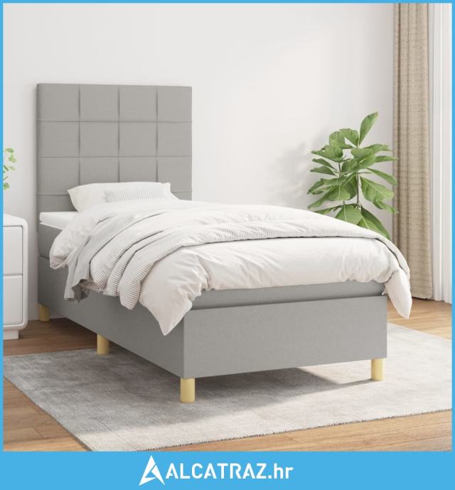 Okvir kreveta s oprugama i madrac svjetlosivi 80x200cm tkanina - NOVO
