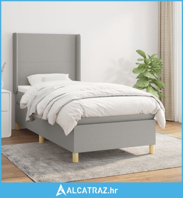 Okvir kreveta s oprugama i madrac svjetlosivi 80x200cm tkanina - NOVO