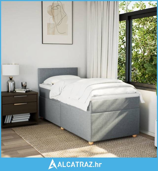 Okvir kreveta s oprugama i madrac svjetlosivi 80x200cm tkanina - NOVO