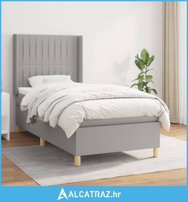 Okvir kreveta s oprugama i madrac svjetlosivi 80x200cm tkanina - NOVO