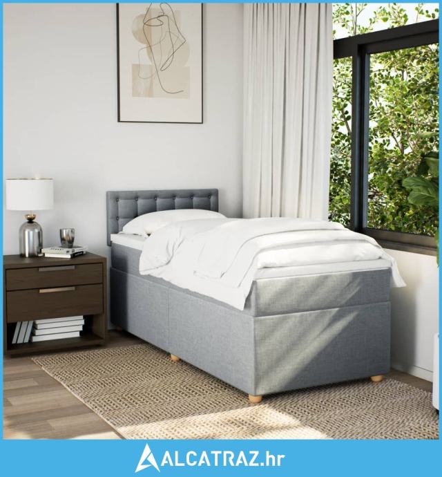 Okvir kreveta s oprugama i madrac svjetlosivi 80x200cm tkanina - NOVO
