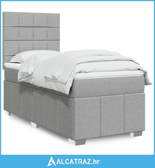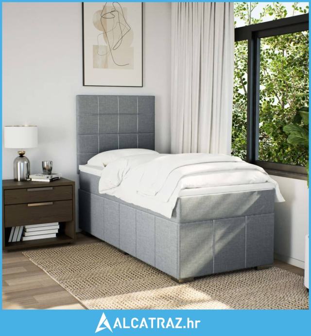 Okvir kreveta s oprugama i madrac svjetlosivi 80x200cm tkanina - NOVO