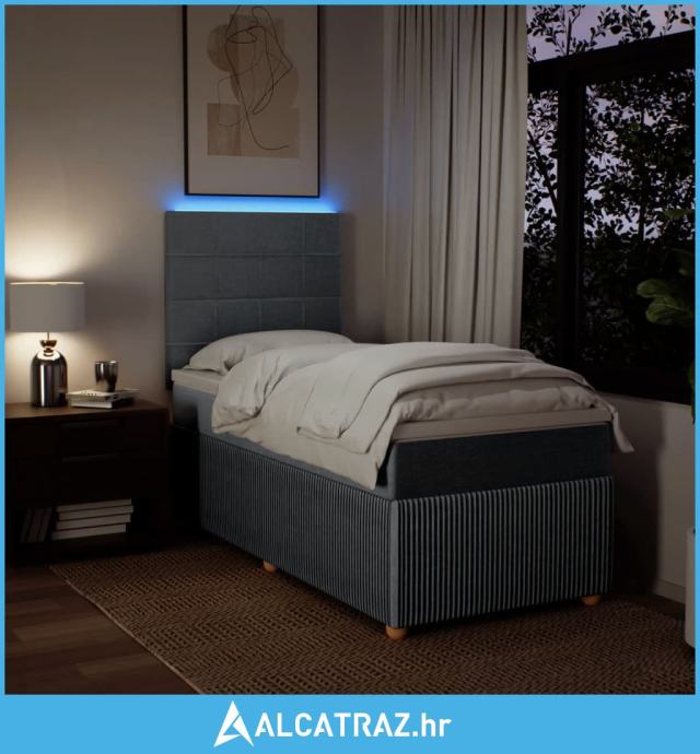 Okvir kreveta s oprugama i madrac svjetlosivi 80x200cm tkanina - NOVO