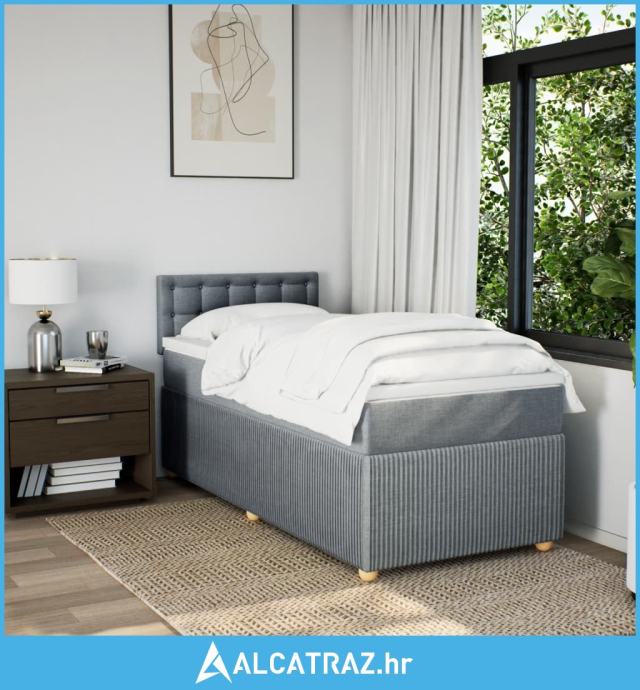 Okvir kreveta s oprugama i madrac svjetlosivi 80x200cm tkanina - NOVO