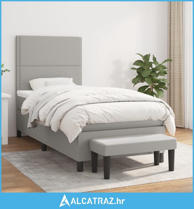 Okvir kreveta s oprugama i madrac svjetlosivi 90x200cm tkanina - NOVO