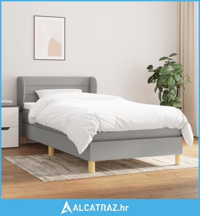 Okvir kreveta s oprugama i madrac svjetlosivi 90x200cm tkanina - NOVO