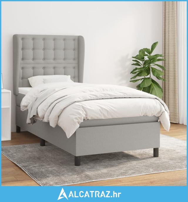 Okvir kreveta s oprugama i madrac svjetlosivi 90x200cm tkanina - NOVO