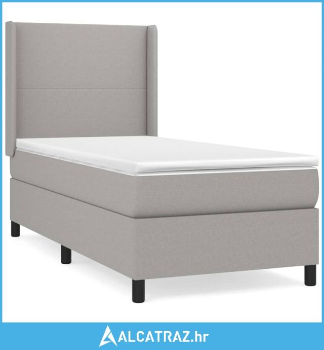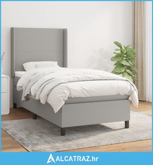 Okvir kreveta s oprugama i madrac svjetlosivi 90x200cm tkanina - NOVO